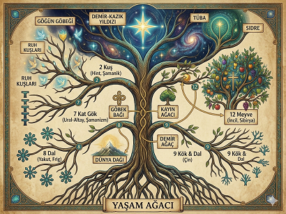 görülebileceği gibi, Asya Şamanist geleneklerinin birçoğunda yaşam ağacı “Dünya