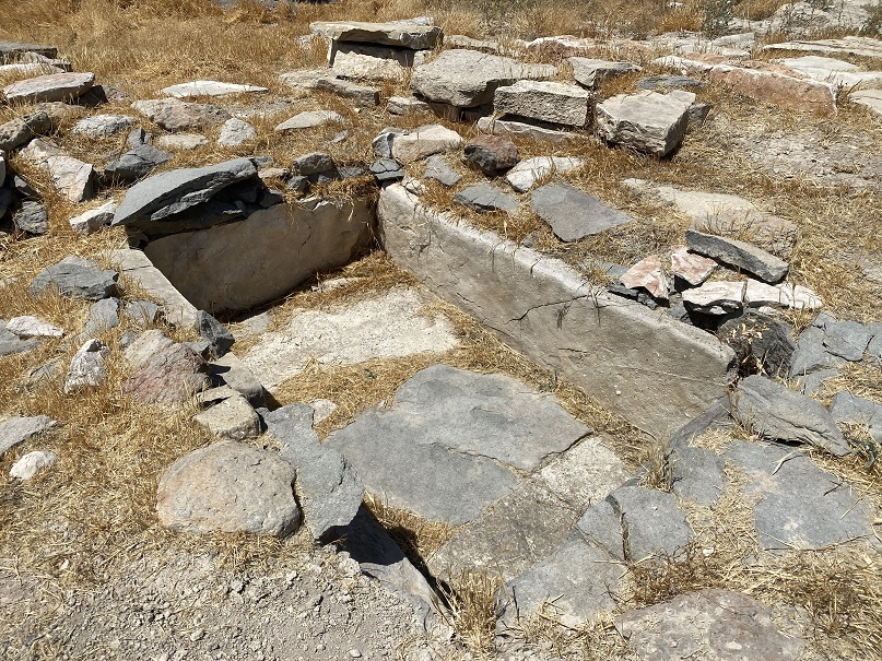 hediyeleri ve mezarı kapatan taş kapak üzerinde bulunan kurban edilmiş 4 genç