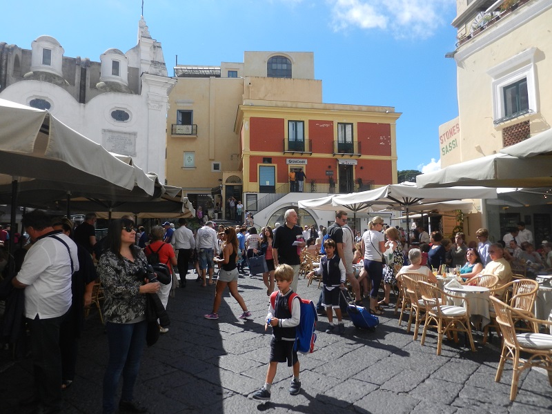 Capri Kasabası tepeye kurulmuş. Asansörle ya da yürüyerek çıkmak mümkün olduğu