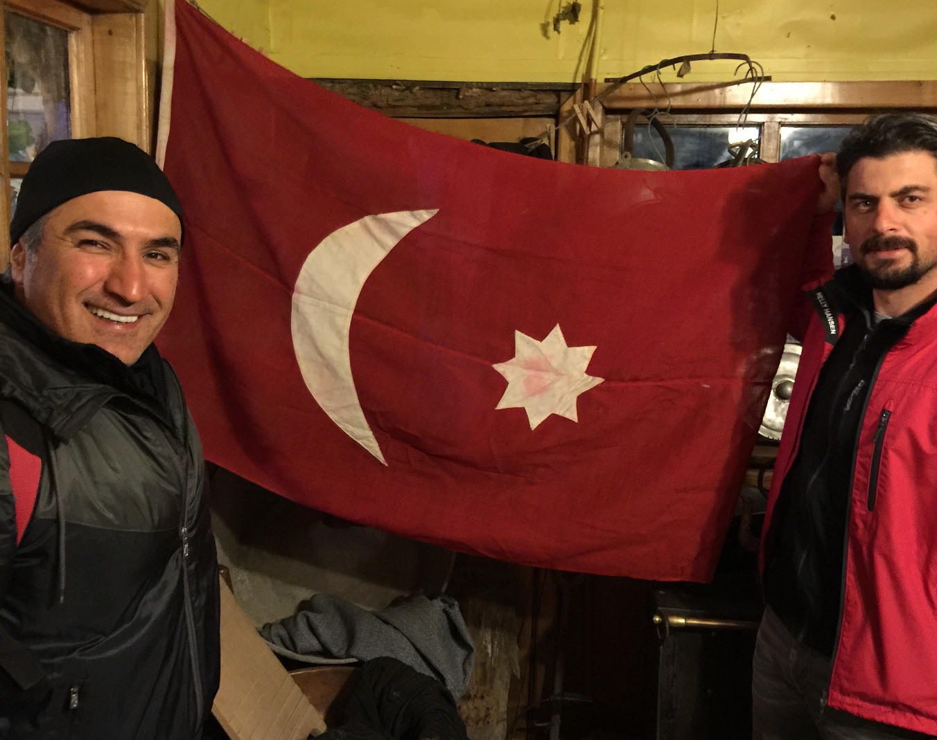 Bizim de ilk dikkatimizi çeken eski bir Türk bayrağı oldu.